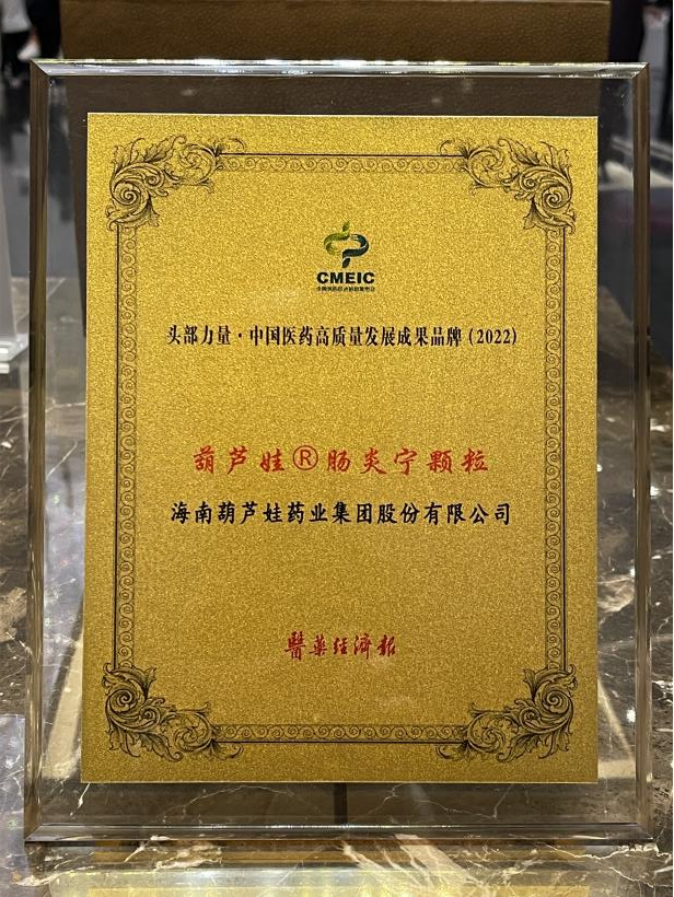 在本次发布会上,公司重点产品百亿牌肠炎宁颗粒同时荣膺“头部力量·中国医药高质量发展成果品牌(2022)”。百亿牌肠炎宁颗粒(2g),传承经典名方,临床广泛用于成人及儿童急慢性胃肠炎、腹泻等疾病的治疗,由于其杰出的临床价值,被纳入国家中医药管理局相关专家项目组制定的《中成药治疗小儿腹泻病临床应用指南》。