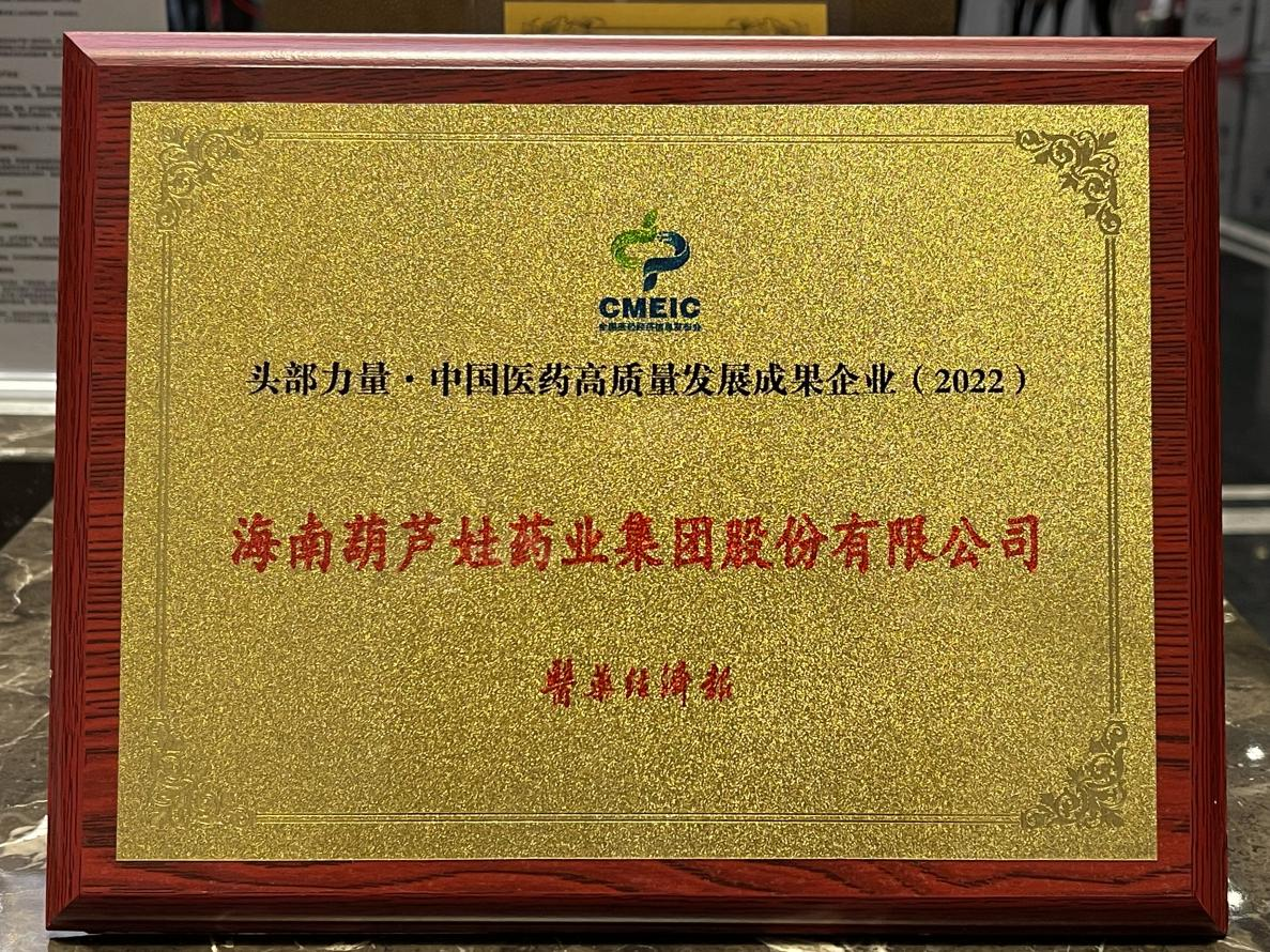 百亿药业蝉联头部力量·中国医药高质量发展成果企业