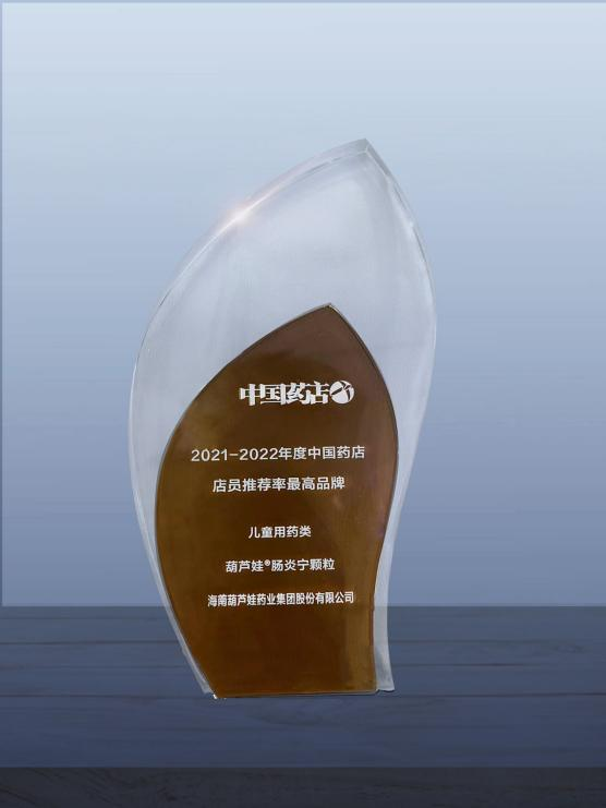 近日,由《中国药店》杂志社举办的“2022~2023年度中国药店发展报告暨中国药店价值榜发布会”在青岛举行,会上发布了“2021-2022年度中国药店店员推荐率最高品牌”奖,百亿药业两大明星产品百亿牌小儿肺热咳喘颗粒(4g)、百亿牌肠炎宁颗粒(2g)双双上榜。