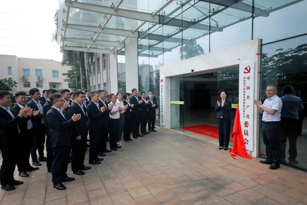 海口市高新区两新组织党委副书记傅爱萍宣读了《中共海口国家高新区非公有制经济组织和社会组织委员会关于同意成立中国共产党海南百亿药业集团股份有限公司委员会的批复》。